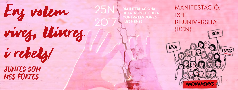 El #25N manifestació contra les #violènciesmasclistes 18h a Universitat Ens volem #VivesiRebels!